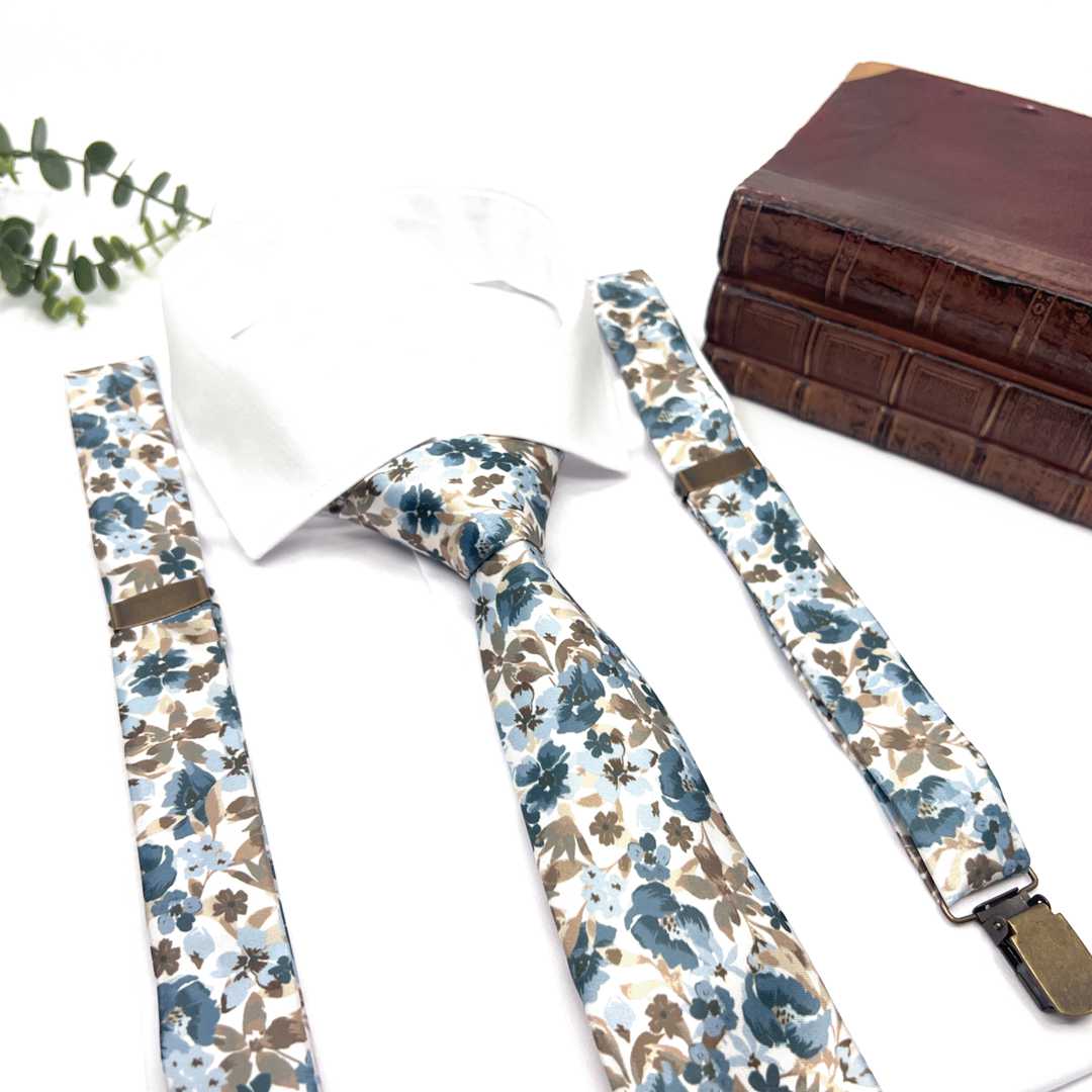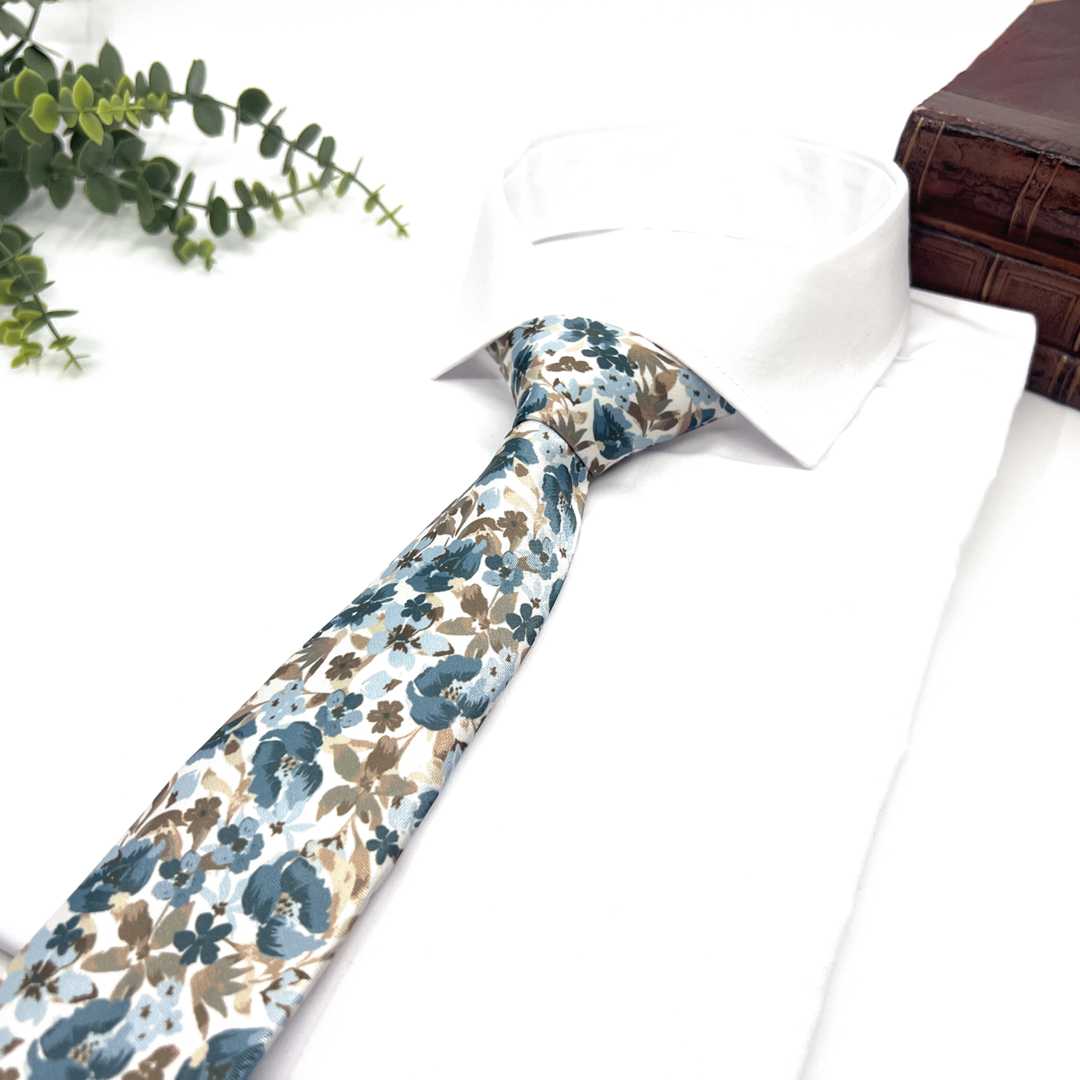xDusty Blue Floral Necktie Unique Wedding Accessories