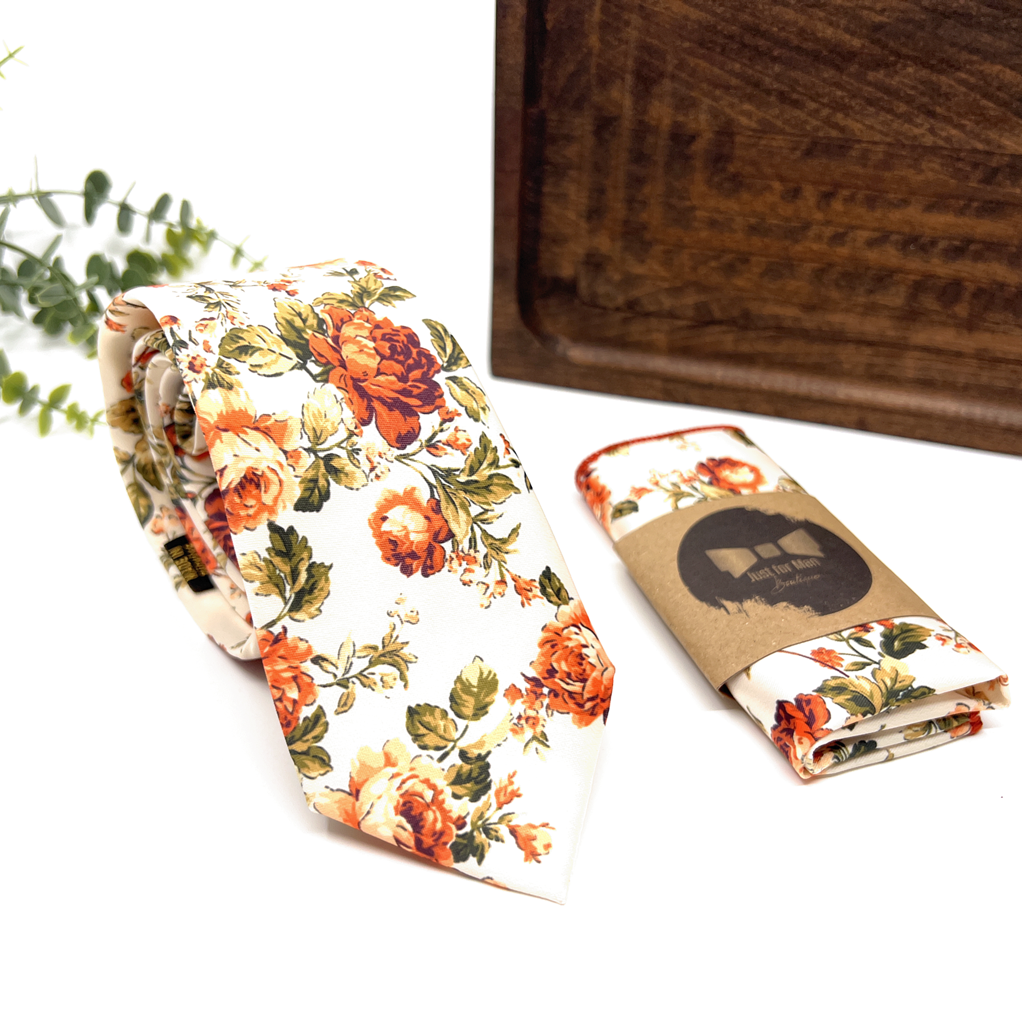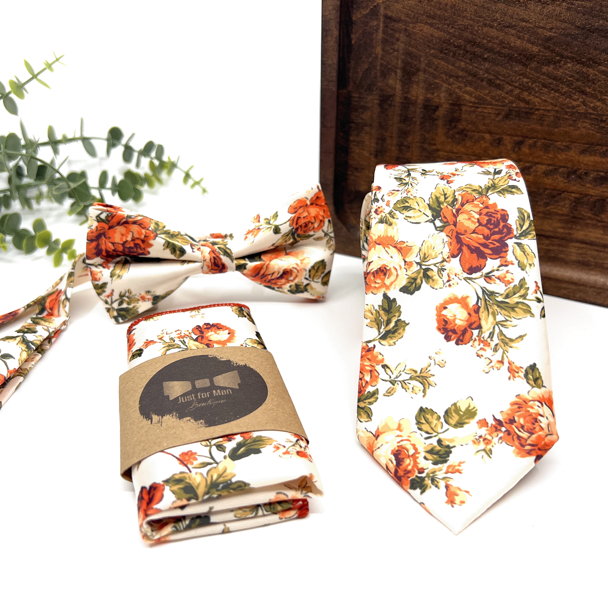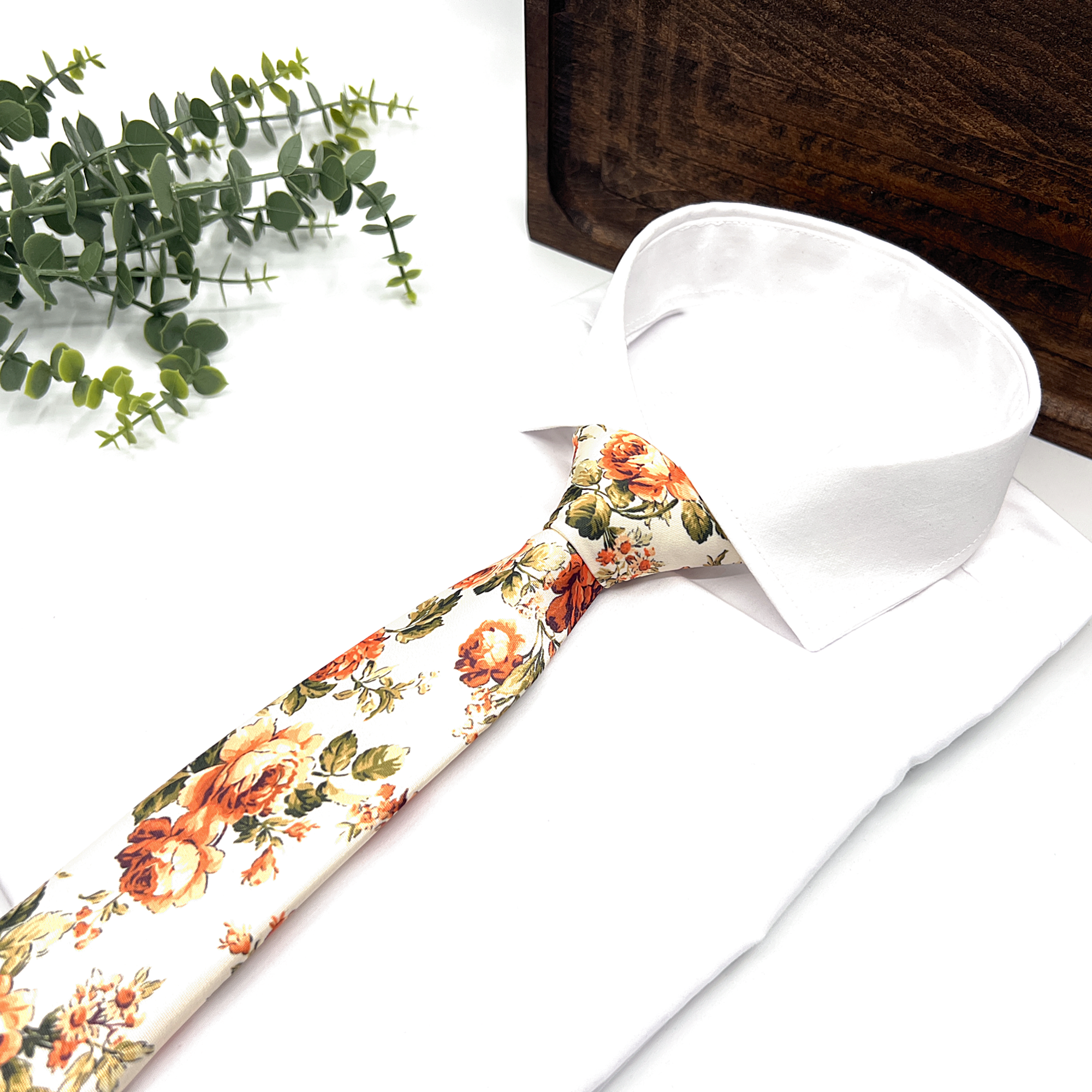 xBurnt Orange Floral Neck Tie – Wedding & Groomsmen Tie