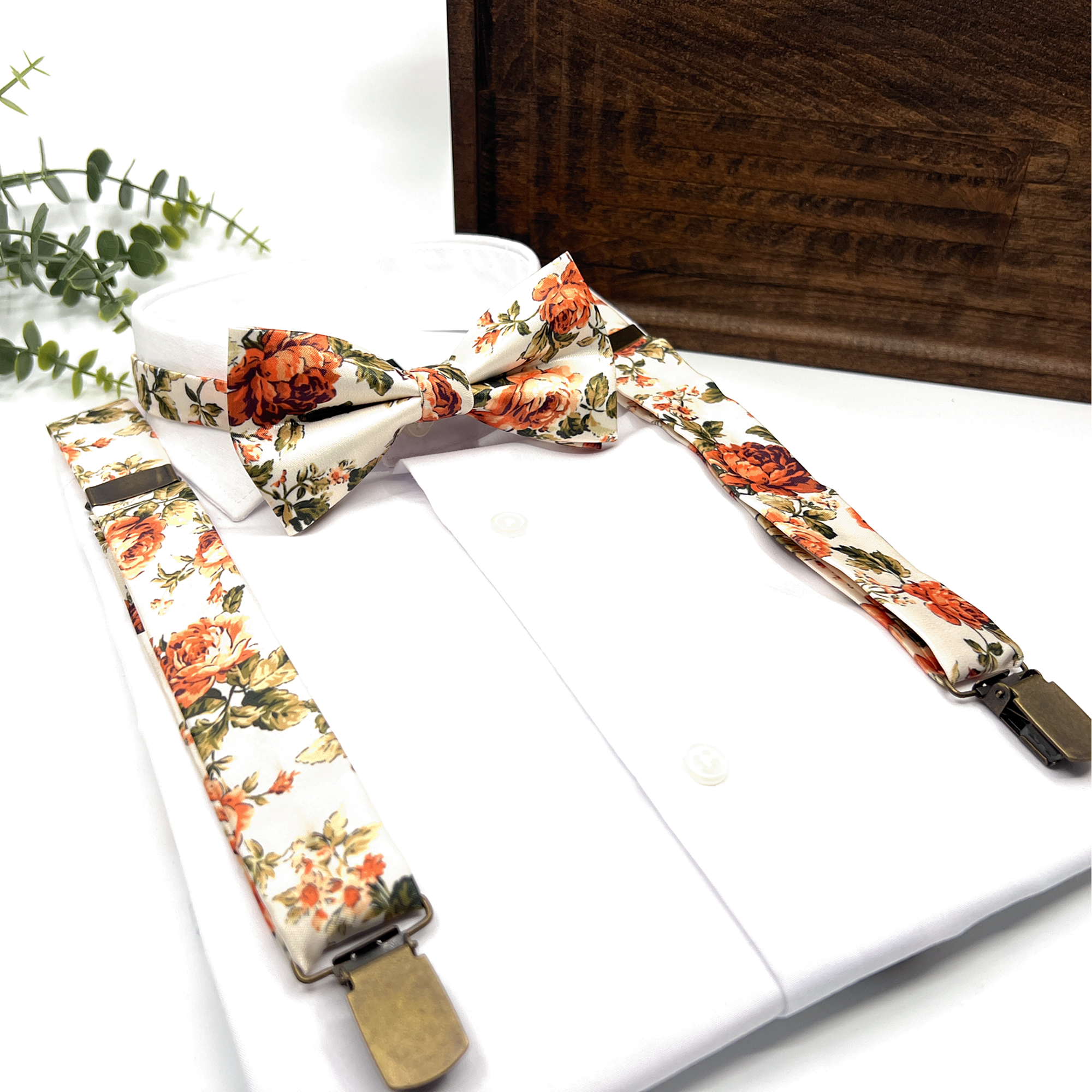 This meticulously handcrafted tie features delicate floral patterns in soft Burnt Orange hues, making it the perfect wedding accessory for grooms, groomsmen, and guests.