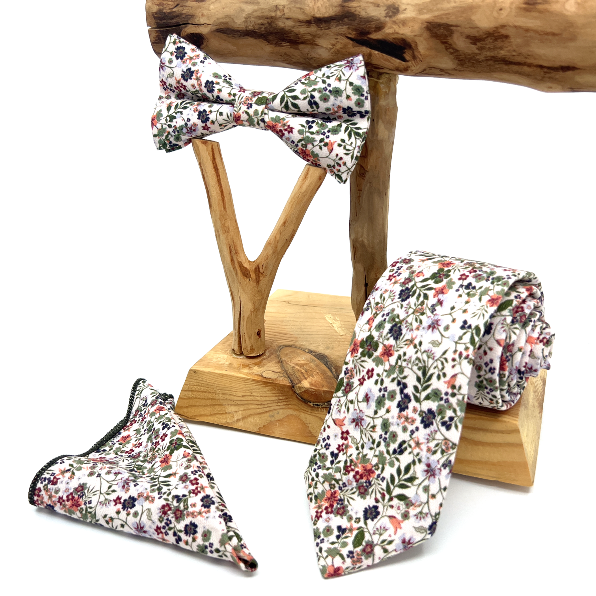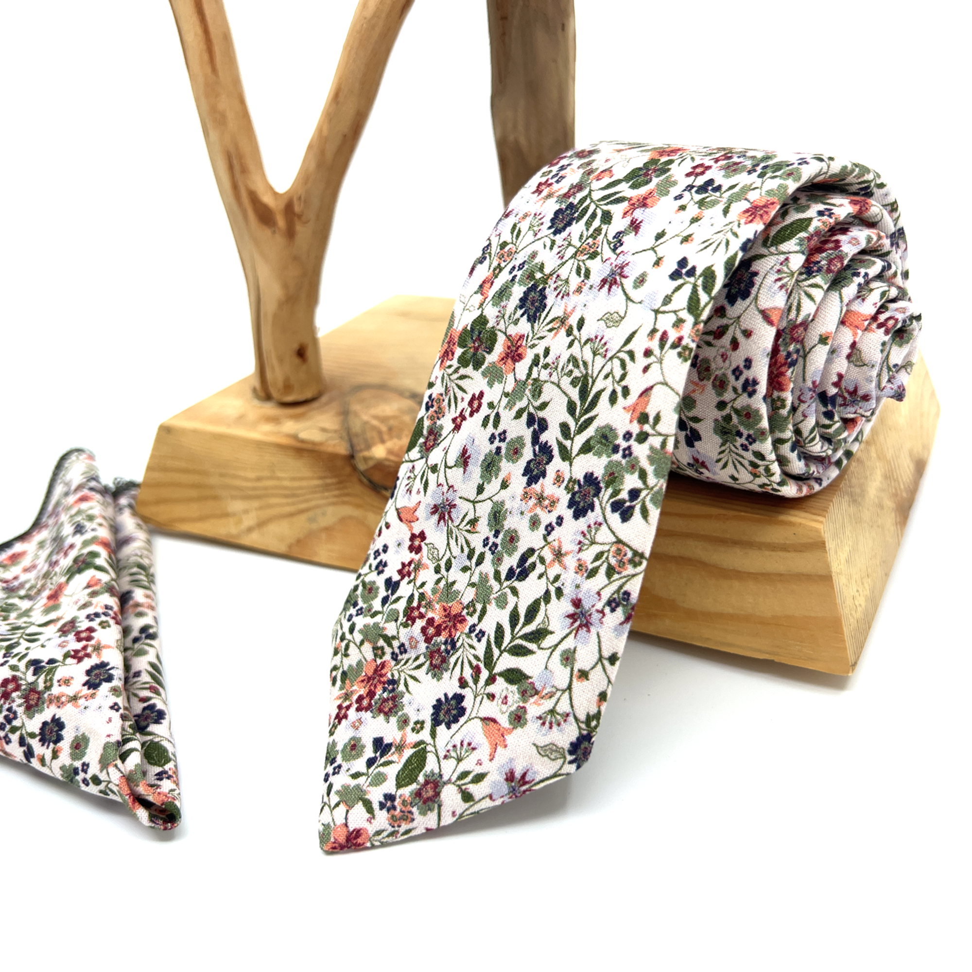 This meticulously handcrafted tie features delicate floral patterns in soft Burnt Orange Floral Tie with Green Tones hues, making it the perfect wedding accessory for grooms, groomsmen, and guests.