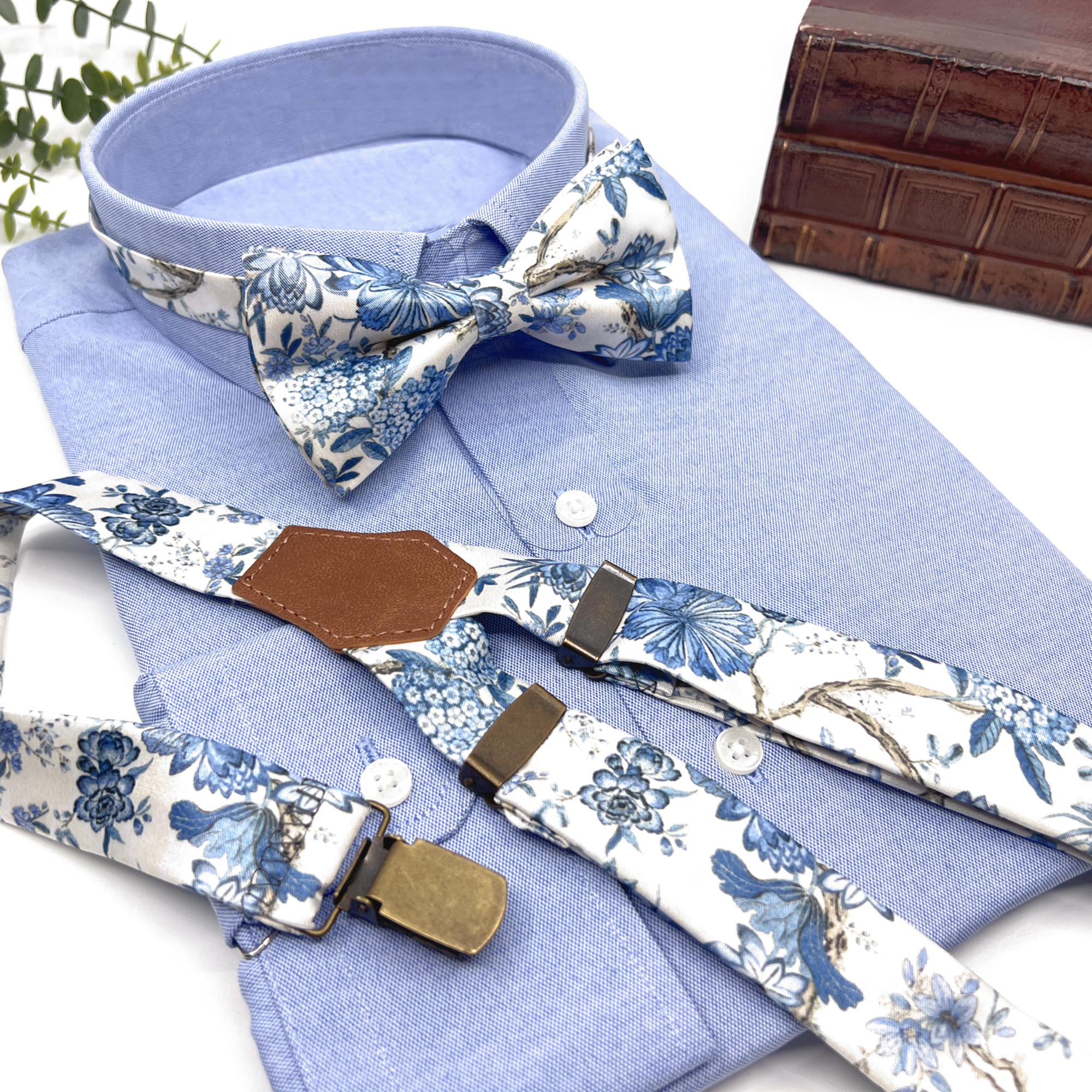 xDusty Blue Floral Suspenders Set – Wedding & Groomsmen Suspenders