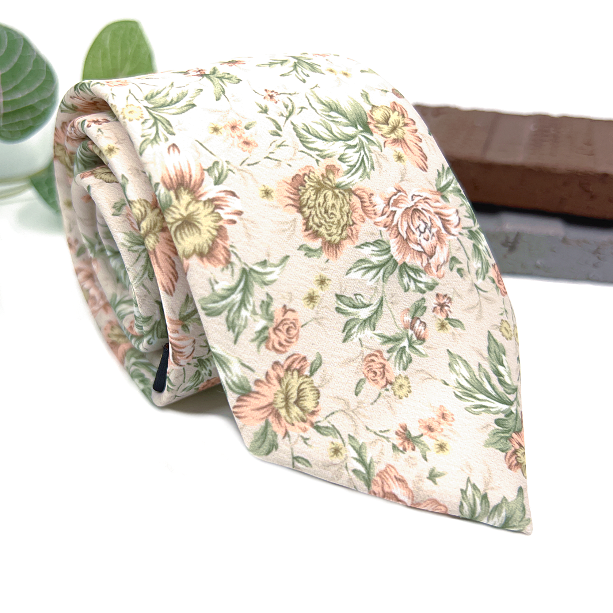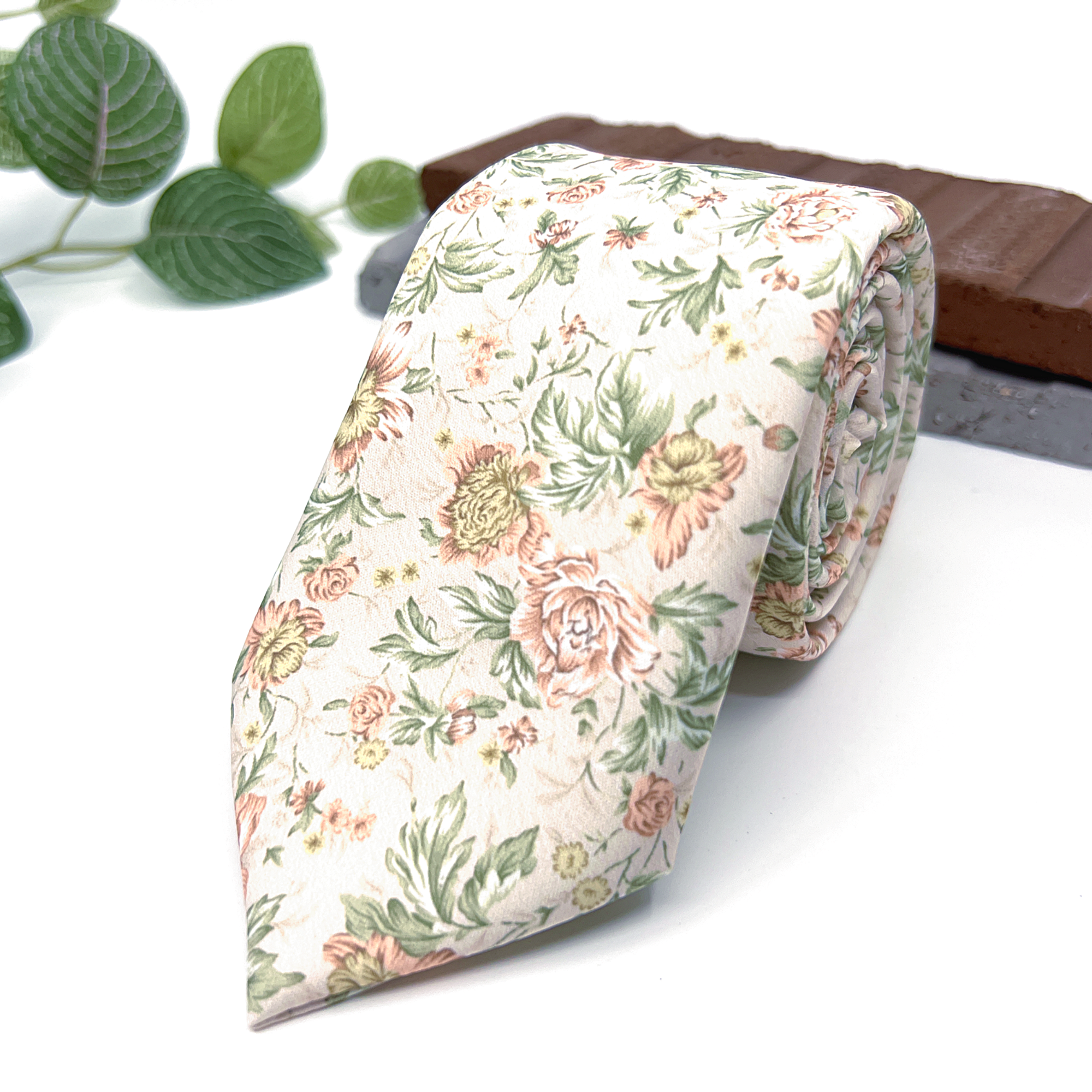 xFloral Blush Pink & Soft Sage Green Neck Tie – Wedding & Groomsmen Tie