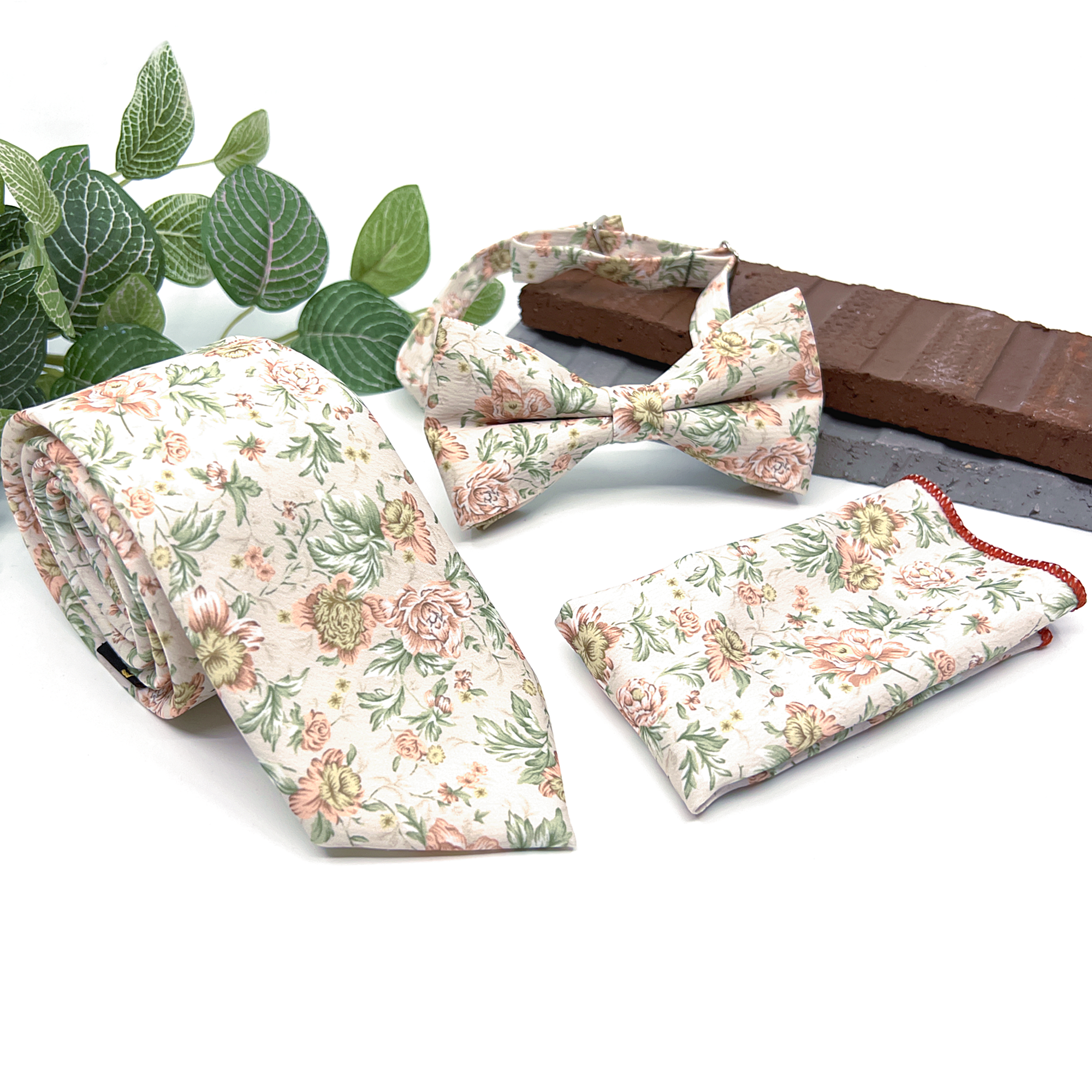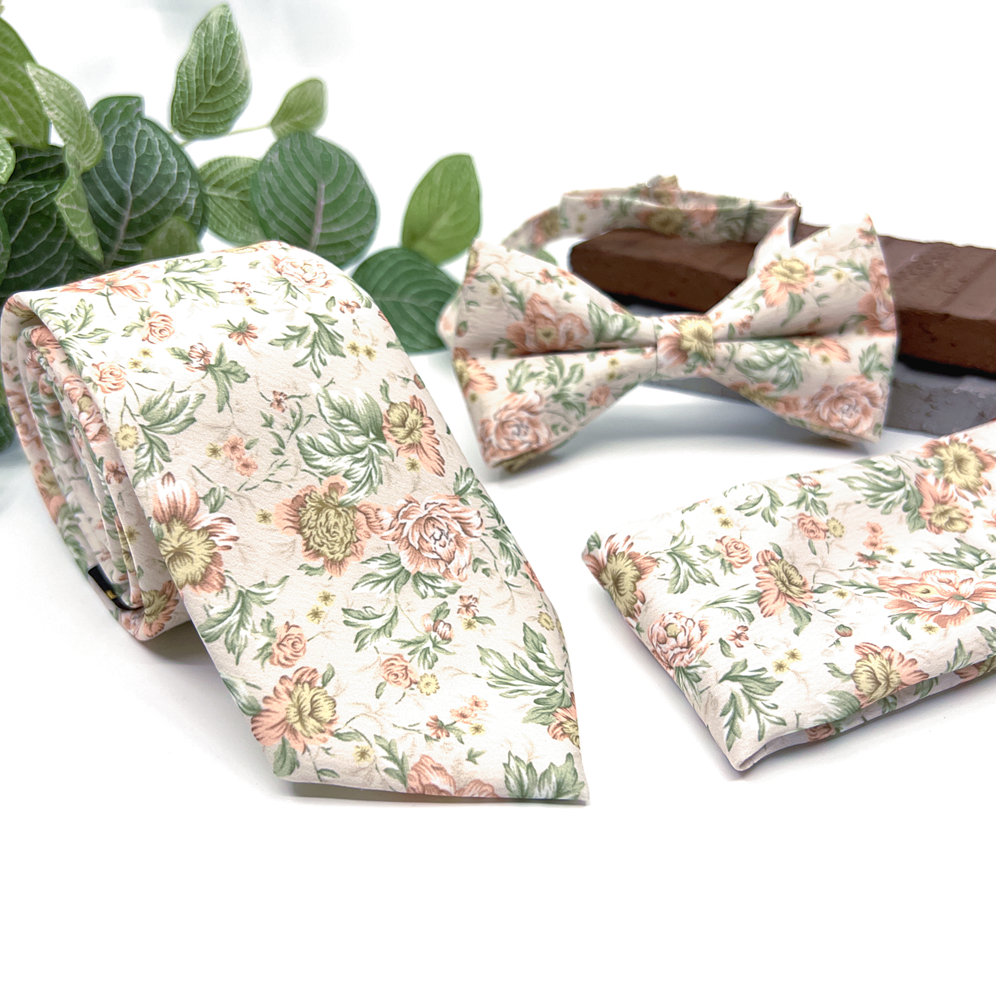 This meticulously handcrafted tie features delicate floral patterns in soft Blush Pink hues, making it the perfect wedding accessory for grooms, groomsmen, and guests.
