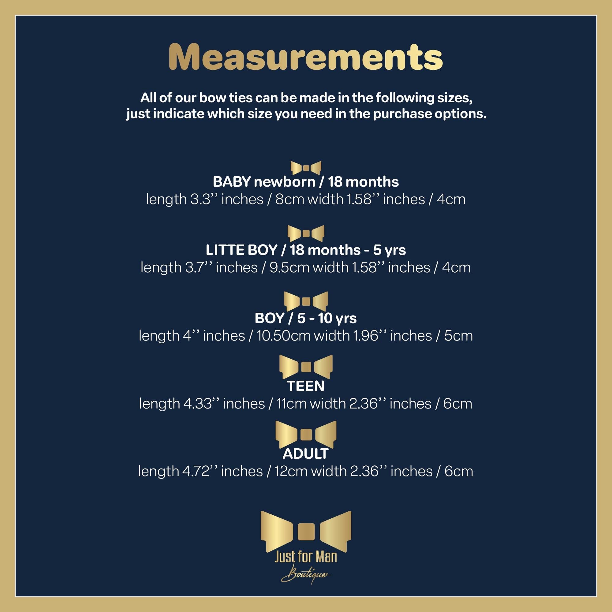 Boy (5–10 yrs): Length 4" (10.5 cm), Width 1.96" (5 cm)