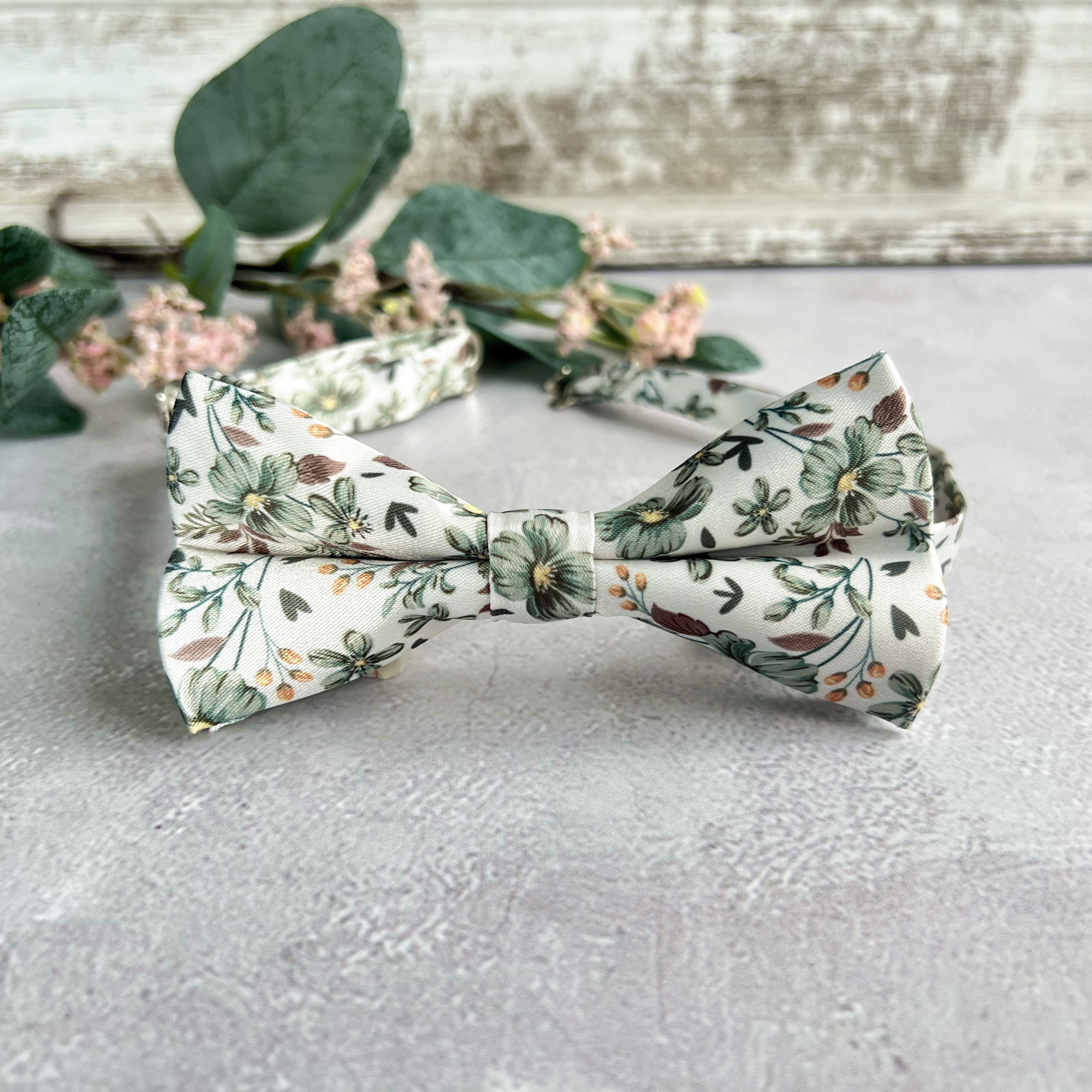 Add a timeless touch to your special day with our Sage Green Floral Bow tie, designed for weddings, groomsmen attire, and elegant occasions.
