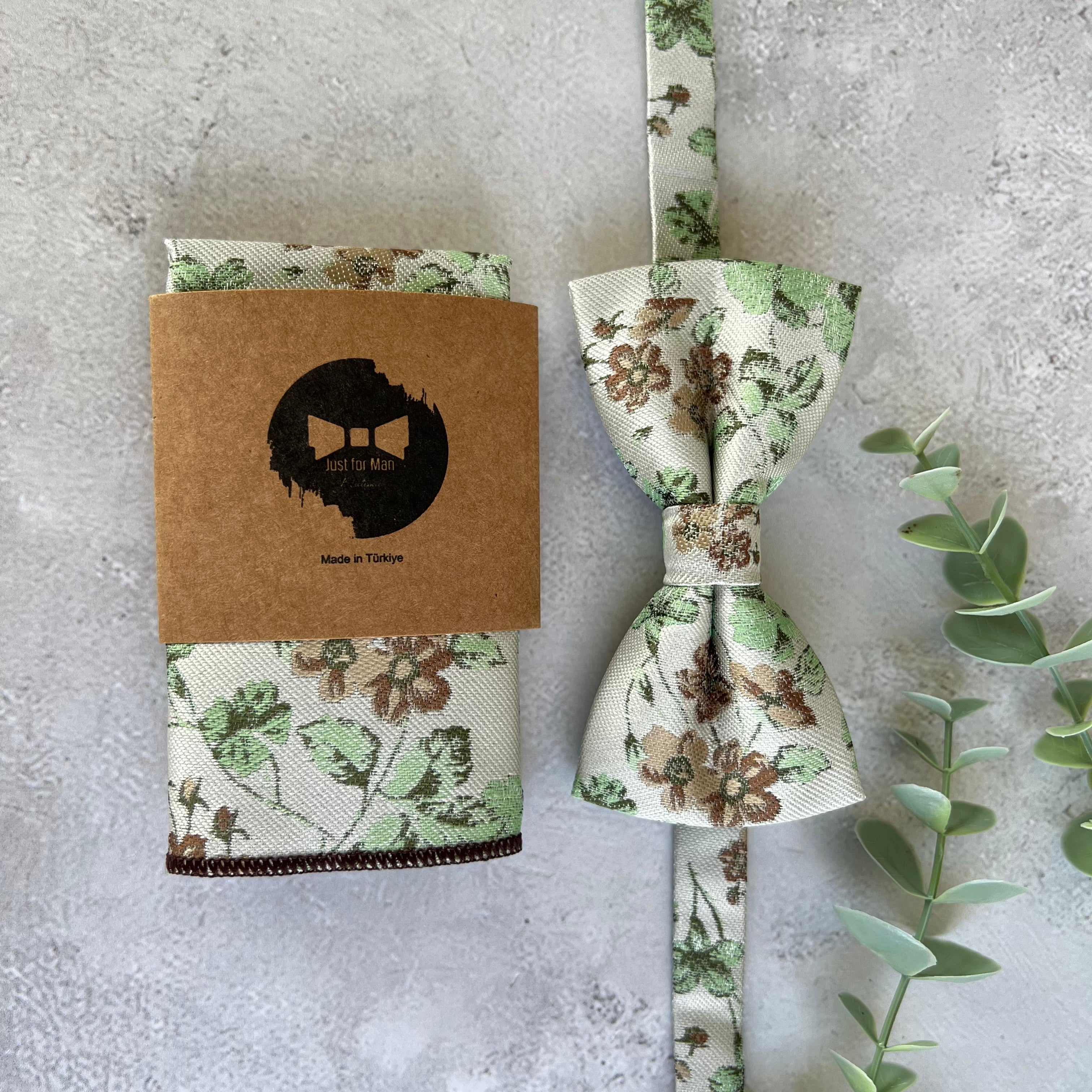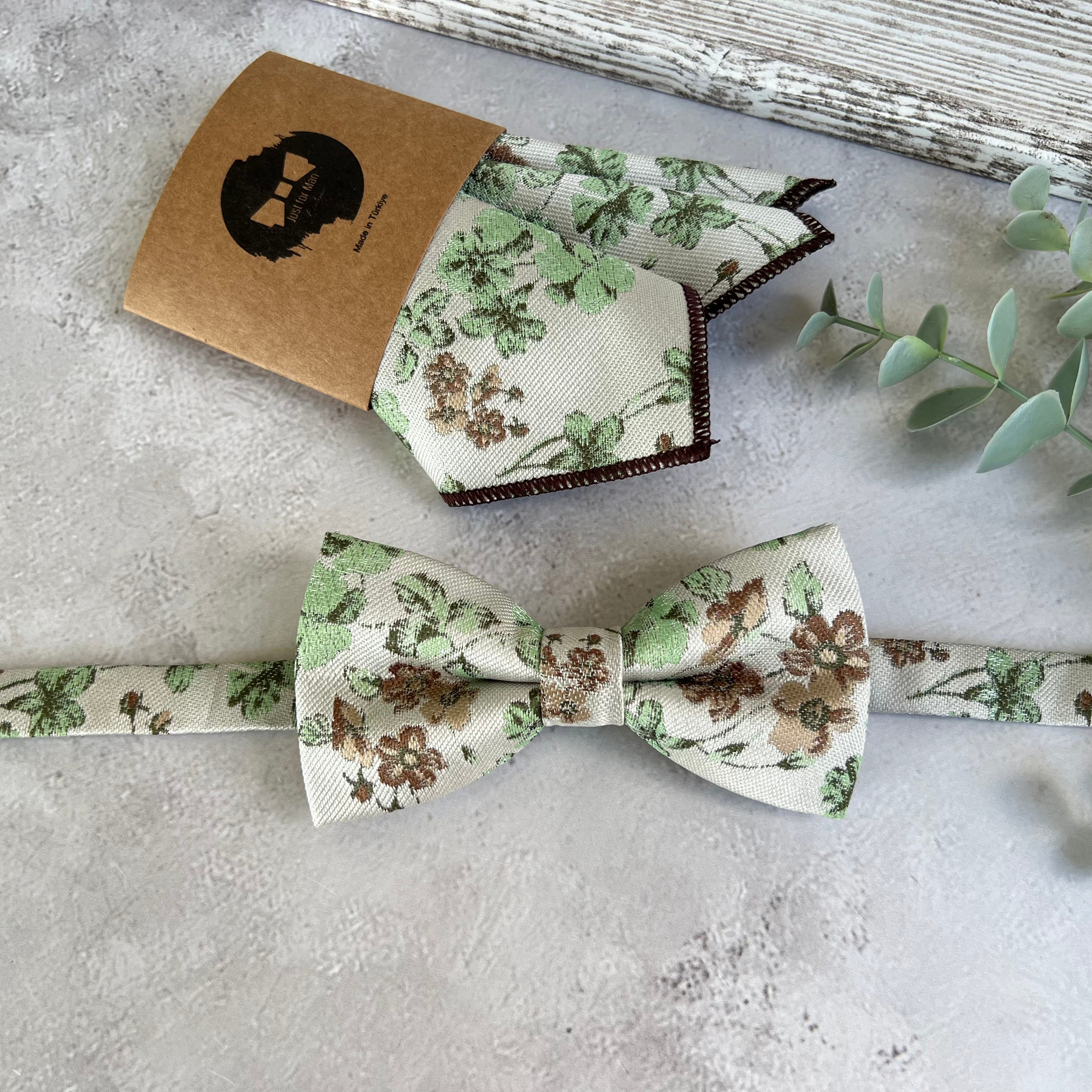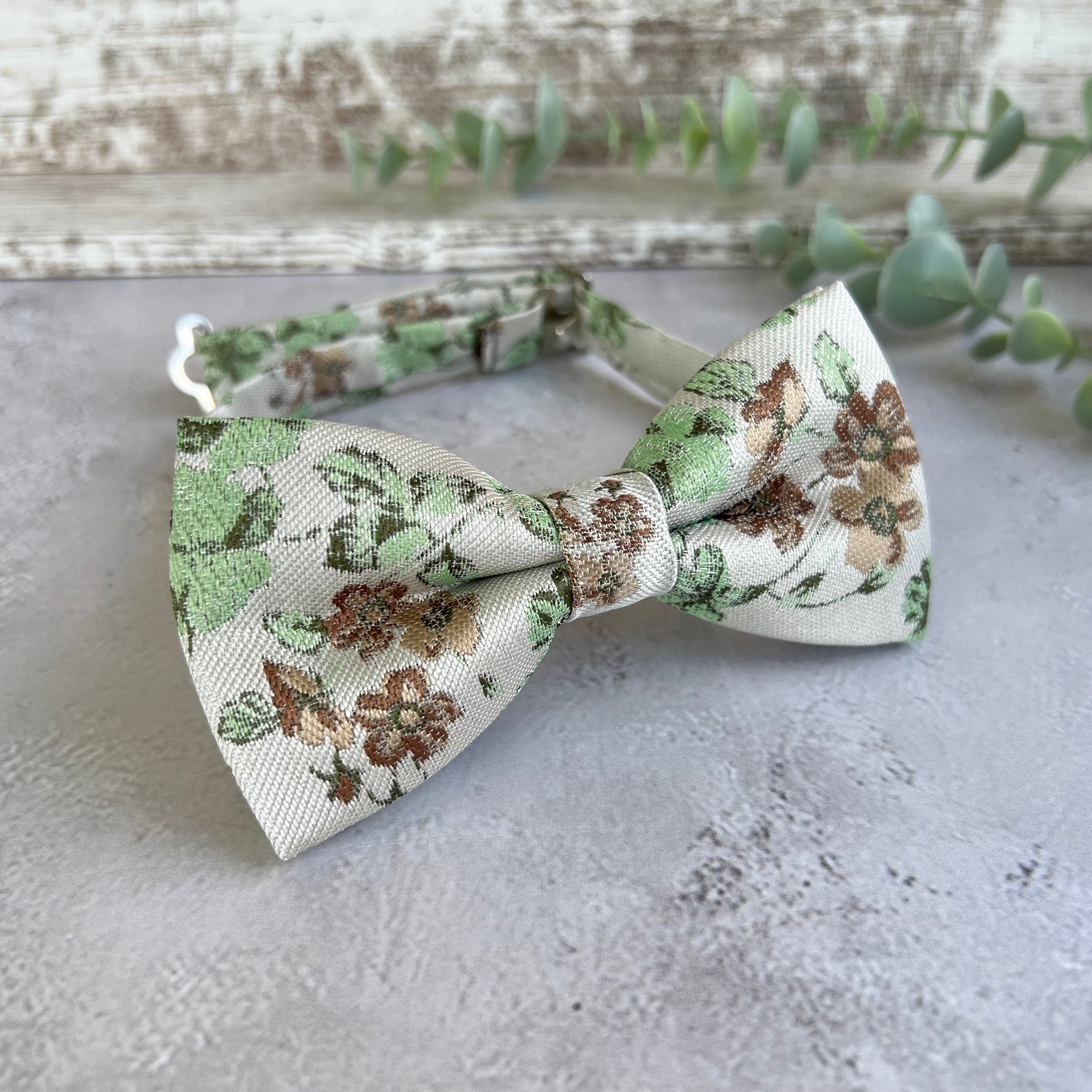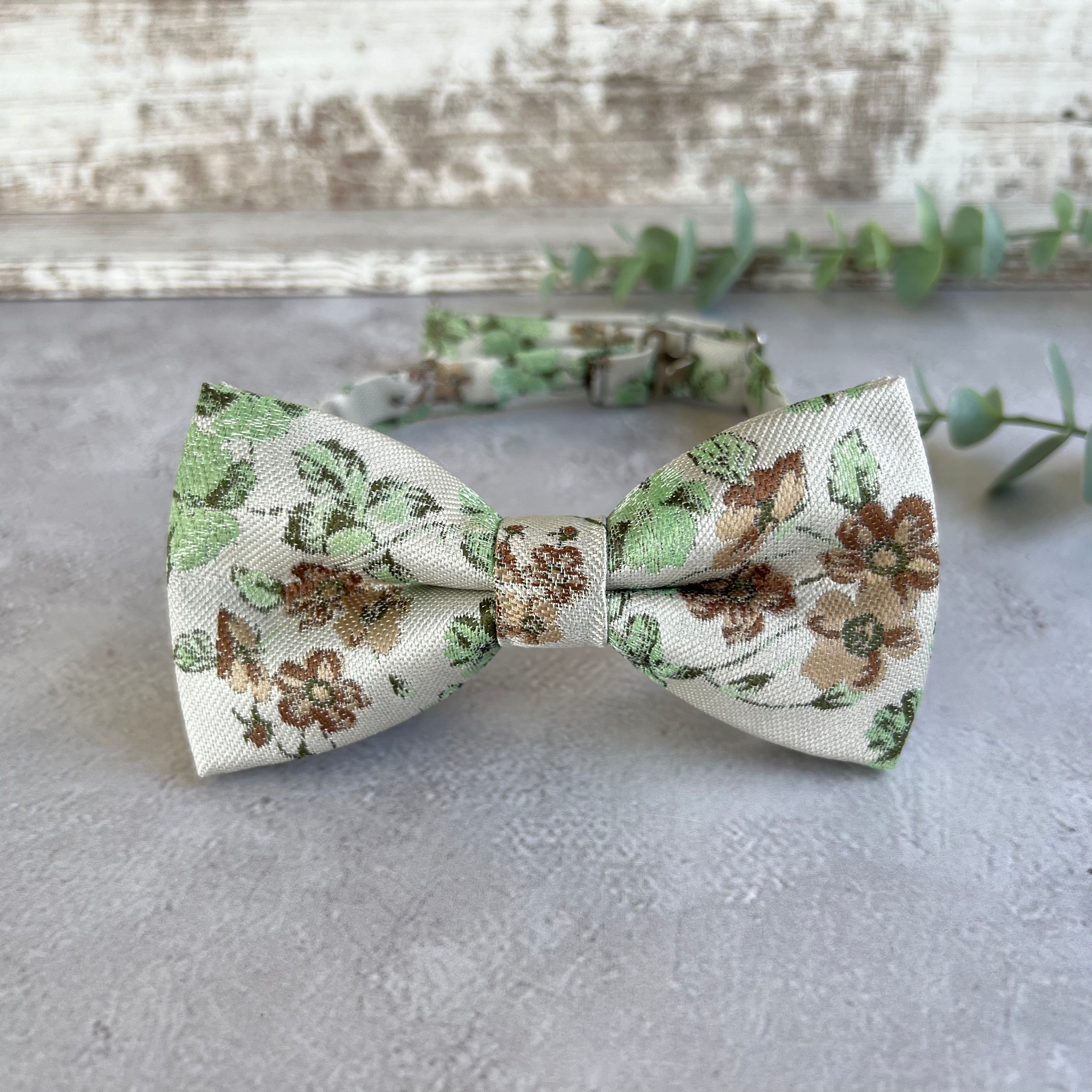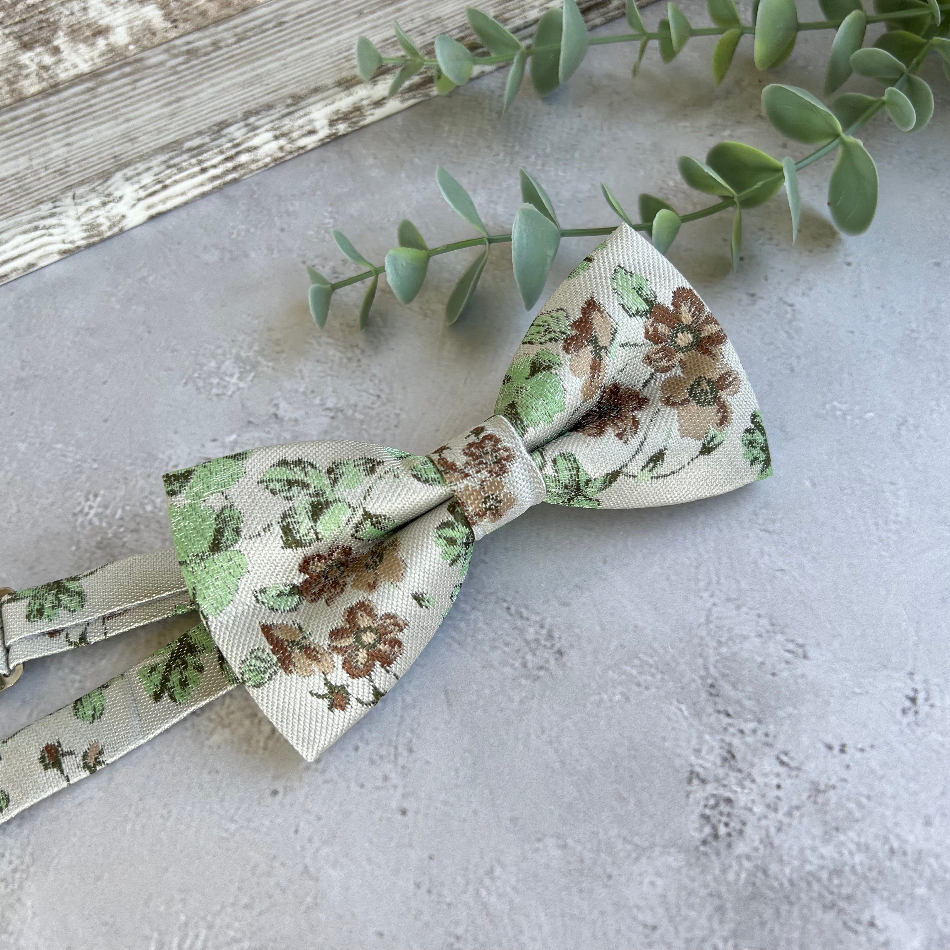 xSage Green Floral Bow Tie on Cream, Rustic Groomsmen Wedding Accessories